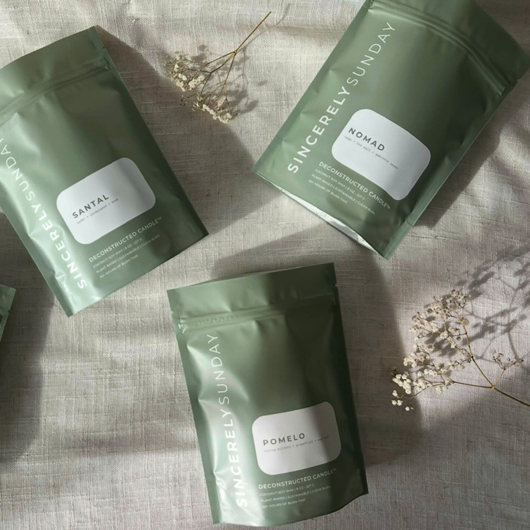 That’s how Deconstructed Candles™ came to life. Our DIY candle refill kits are designed to give used jars a second life, reduce waste, and make the process of enjoying candles a sustainable one. Six months later, in August 2022, Sincerely Sunday officially launched.